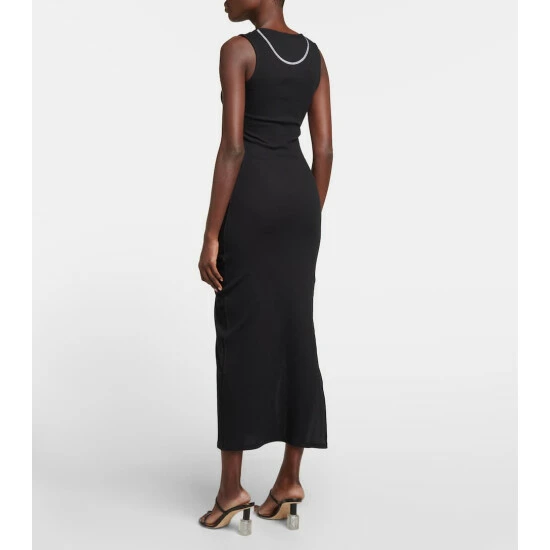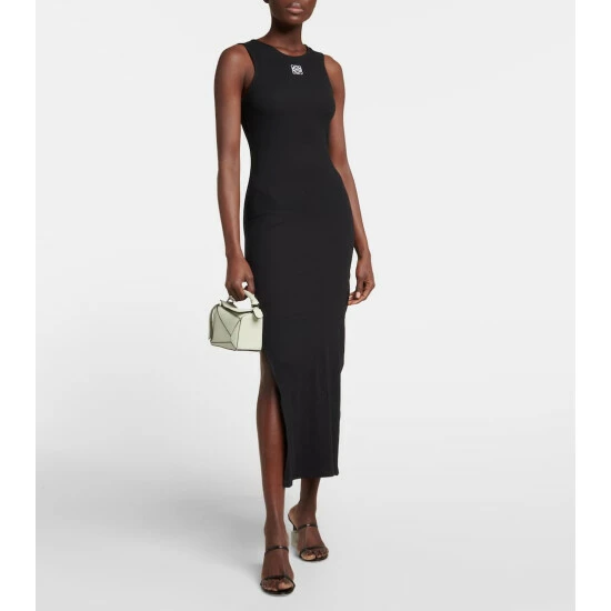 This midi dress from Loewe blends comfort and style effortlessly. It’s rib-knitted from a cotton blend to a clean, figure-hugging silhouette and detailed with the brand’s contrasting Anagram embroidery on the chest.