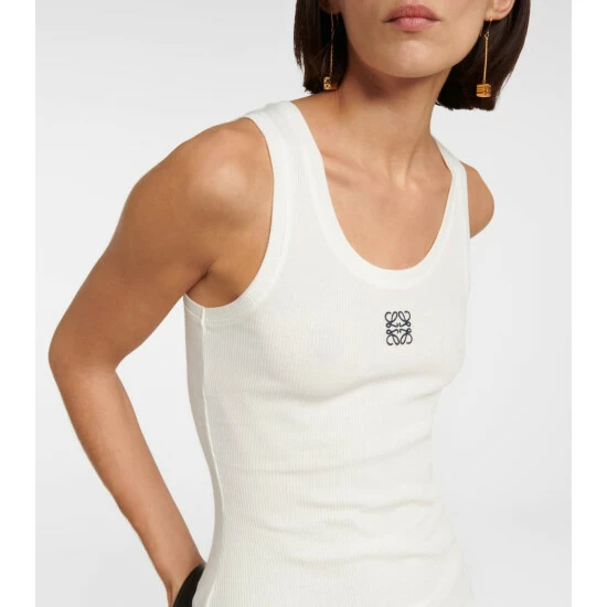 The Anagram logo was designed by the Spanish artist Vicente Vela as a quadruple-L insignia that now lends instant recognition to any Loewe piece. Here, it is embroidered on this ribbed-knit stretchy cotton top.