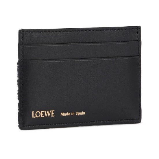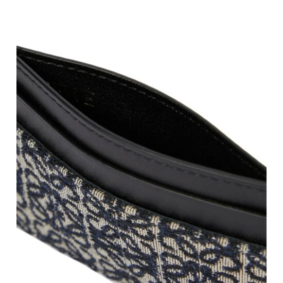 A stylish and compact option for keeping your essentials, this card holder from LOEWE has four card slots and a larger pocket. It’s made from a navy blue anagram-patterned jacquard and black leather.