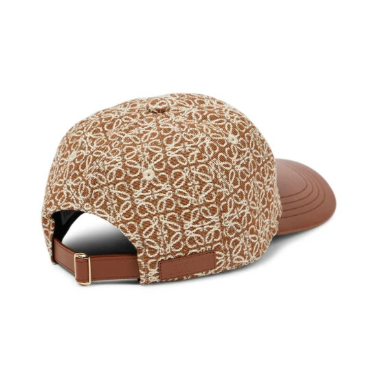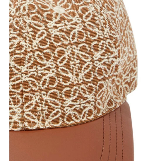 Complete any look with this Anagram jacquard cap from Loewe. Made from jacquard, it has a tan leather brim and an adjustable strap at the back.
