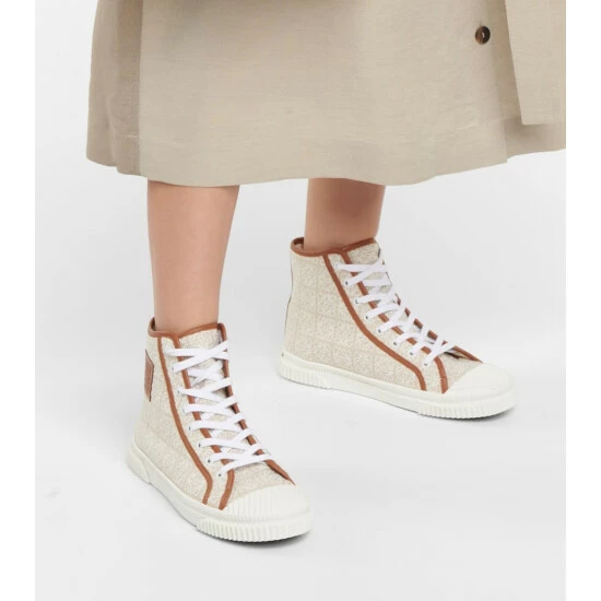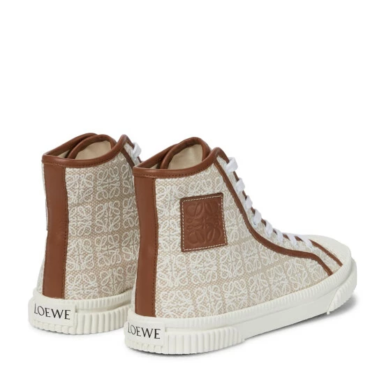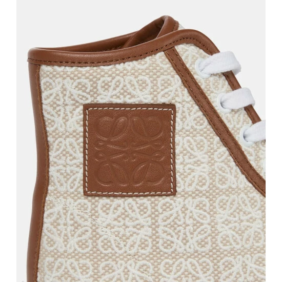Featuring an all–over print of the label’s Anagram logo, these white high-top sneakers will imbue casual looks with LOEWE’s undeniable elegance. Made from canvas, the pair is set on flat rubber soles and are trimmed with brown leather for a chic finish.
