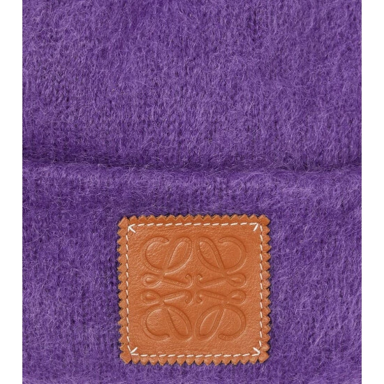 Brighten up your headgear collection with this fuzzy purple beanie from Loewe. Made from a warm mohair and wool-blend, this piece features the brand-signature Anagram embossed onto an embroidered calfskin tab.