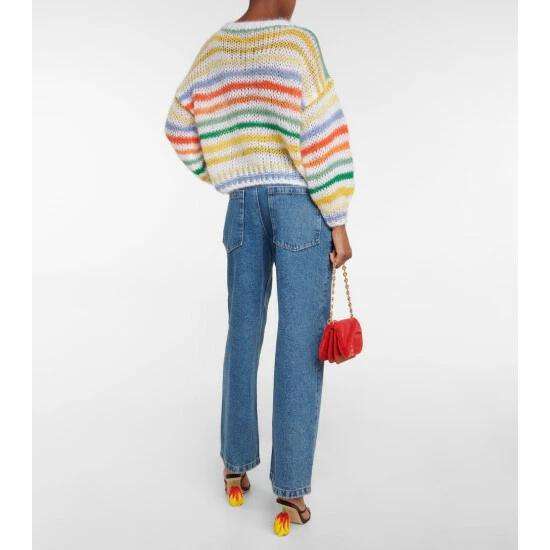 Infuse fall dressing with colorful pieces like this striped Anagram sweater from Loewe. It’s made from a loosely-knit mohair-blend with a generous fit and an artisanal embroidered logo.