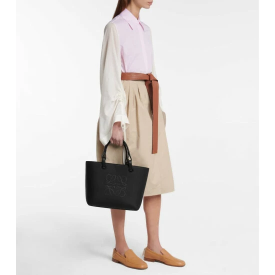 Named after the label’s Anagram logo stamped on its front face, this small tote from LOEWE will make a sleek yet practical addition to your everyday rotation. Made from grained black leather, it suspends from double shoulder straps with additional top handles, and has a capacious interior that comes complete with a slip pocket to safely store small essentials.