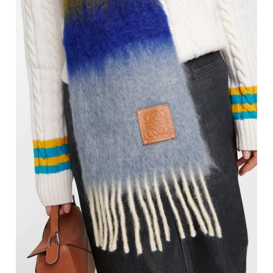 The Anagram logo was designed by the Spanish artist Vicente Vela as a quadruple-L insignia that now lends instant recognition to any Loewe piece. It appears on this tasseled mohair and wool-blend scarf.