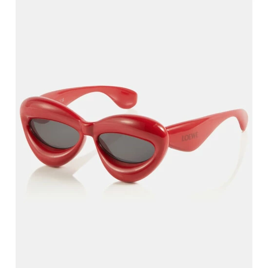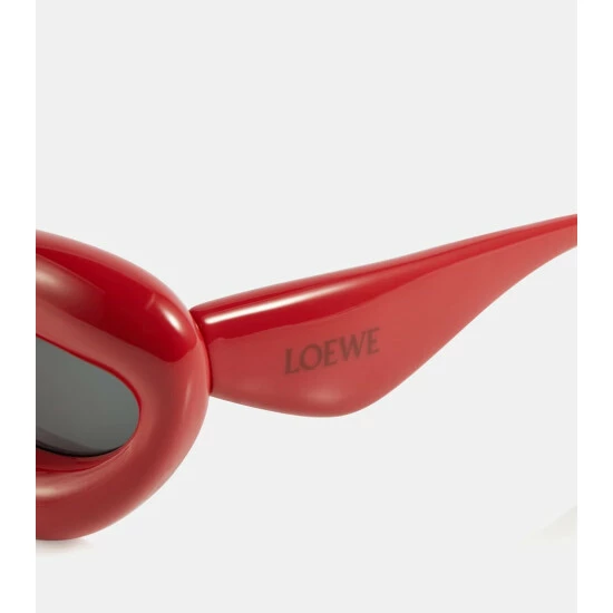 These acetate sunglasses from Loewe take on a classic cat-eye silhouette with artful proportions. Made in Italy, they have tinted lenses and bright red frames with logo lettering at the temples.