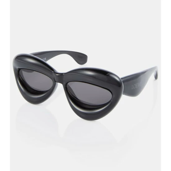 These acetate sunglasses from Loewe take on a classic cat-eye silhouette. Made in Italy, they have tinted lenses and dark blue frames.