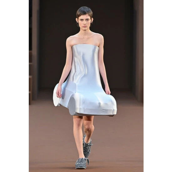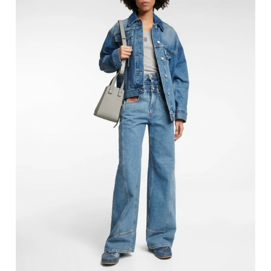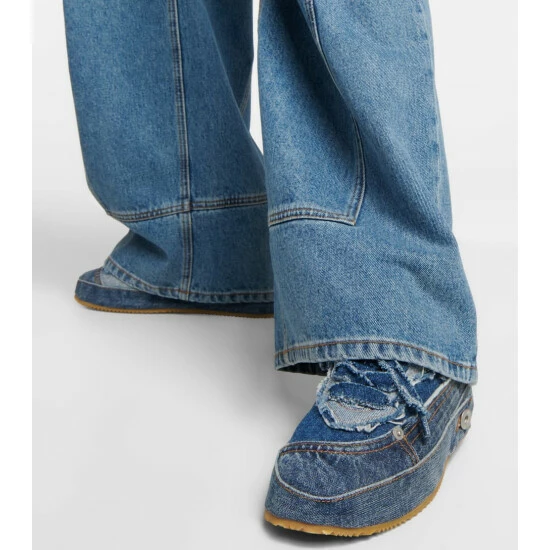We’re intrigued by the deconstructed design of these Loewe sneakers. From the raw-edged denim paneling to the metal rivets and yellow topstitching, it appears as if they’re crafted from a pair of repurposed blue jeans.