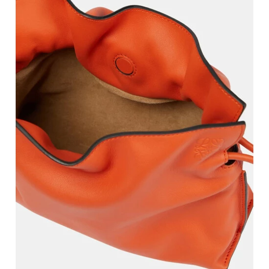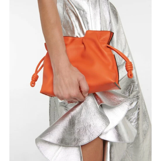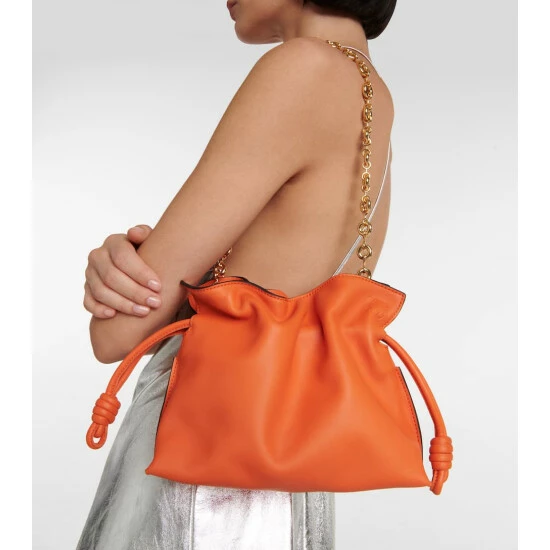 Loewe pays tribute to Iberian culture with the Flamenco Chain clutch, crafted by hand in Spain using traditional techniques. It’s made from bright orange leather with hand-painted edges, iconic drawstring knots, and a golden chain.
