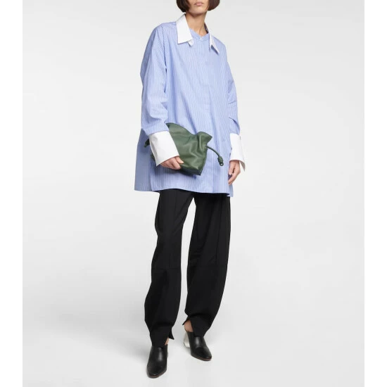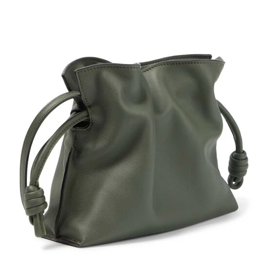 The khaki green Flamenco Mini clutch represents everything we love about Loewe. It’s handcrafted into a contemporary pouch shape with coiled drawstring ties and hand-painted edges. Note the detachable strap for hands-free carry.