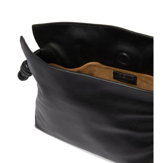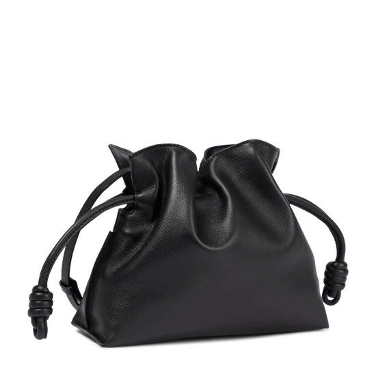 Loewe pays tribute to Iberian culture with the Flamenco clutch, handcrafted in Spain using traditional techniques. The black leather design is accented with the label’s iconic knots at the sides.