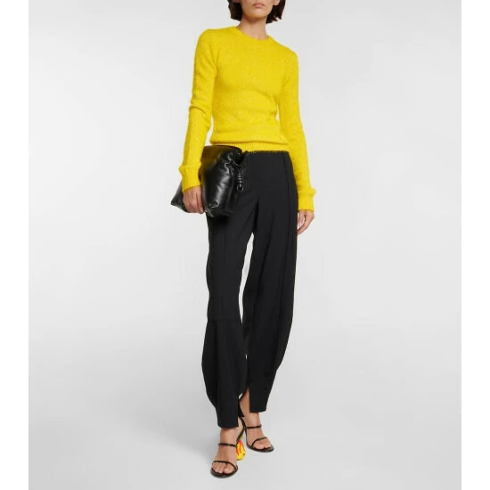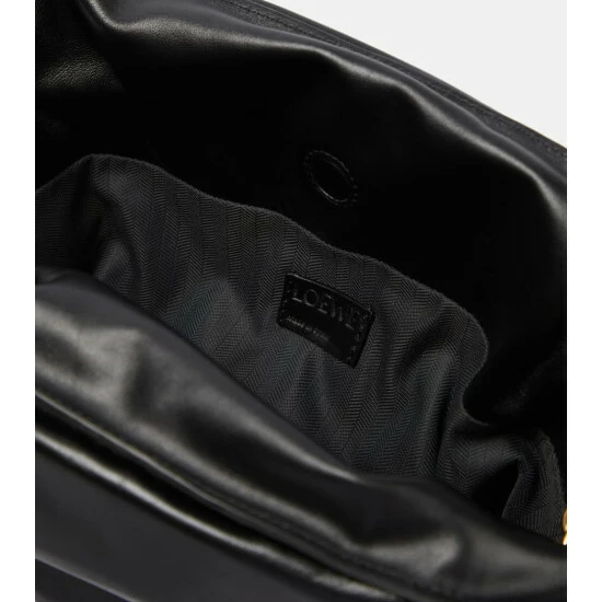The Flamenco Puffer clutch -a voluminous update to a Loewe signature- highlights the brand’s legacy of craftsmanship. The nappa leather design is padded with goose feathers and stays true to the original style with knotted drawstrings.
