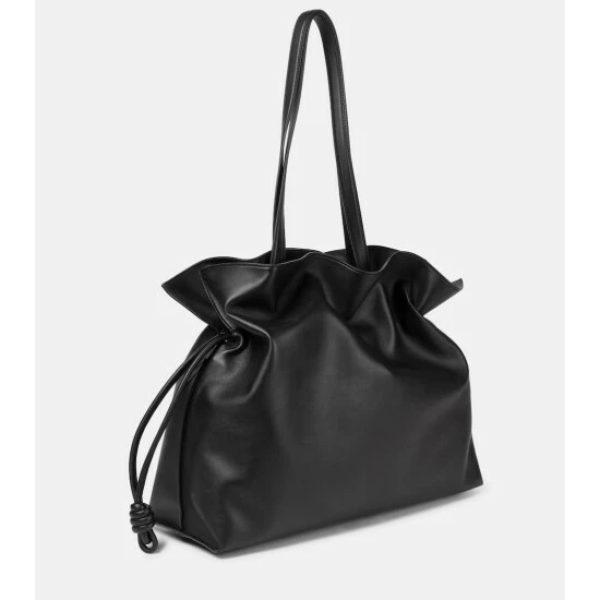 The Flamenco XL shoulder bag from Loewe is a bag that showcases the Spanish label’s affinity for intriguing shapes. It’s made from polished black leather with soft, accordion-like pleats and secured with drawstring fastenings.