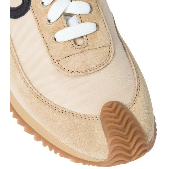 LOEWE is known for its leather craftsmanship, which sets these exceptional Flow Runner sneakers apart from the rest. Made from panels of beige suede and technical fabric, they have black leather L appliqués at the lateral side. Wear yours with top-to-toe neutrals for a color-coordinated look.