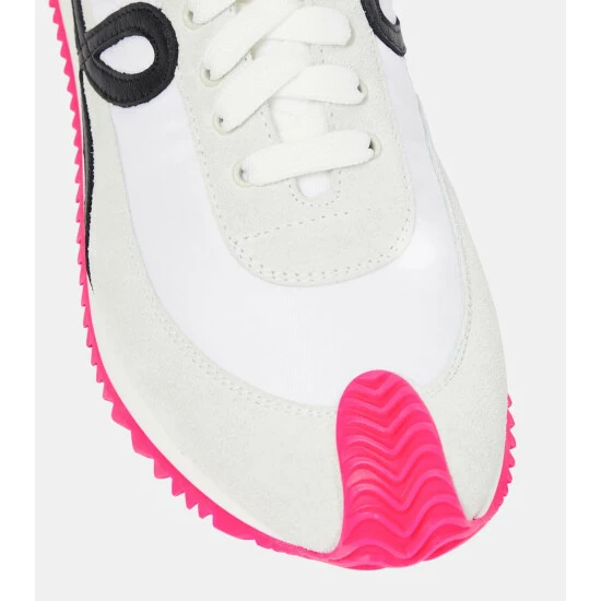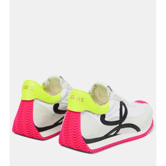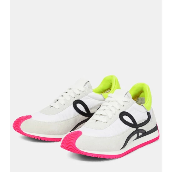 The Flow Runner sneakers from Loewe are a contemporary streetwear staple. They’re made from gray suede and technical fabric, and their soles curl up the toes and the backs of the heels.