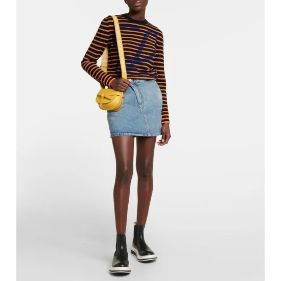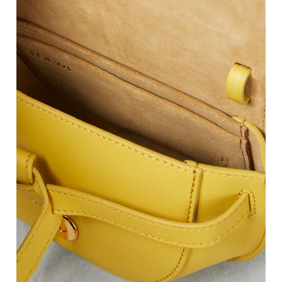 This miniature iteration of Loewe’s Gate bag is updated for brand devotees with an adjustable logo-jacquard shoulder strap. It’s made from yellow leather with a knotted front, suede lining, and Anagram embossing on the flap.