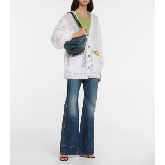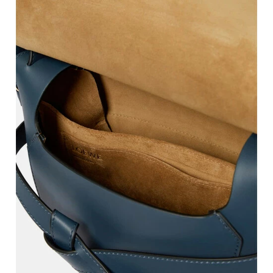 This small iteration of Loewe’s Gate bag is refreshed with an adjustable jacquard shoulder strap. Crafted in Spain from blue leather, it has a knotted detail at the front and a side-latched metal pin.