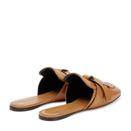 Fans of Loewe will instantly recognize the artful knots that adorn the Gate leather slippers. Made in Italy, this square toed, slip-into tan style features topstitched leather trims.