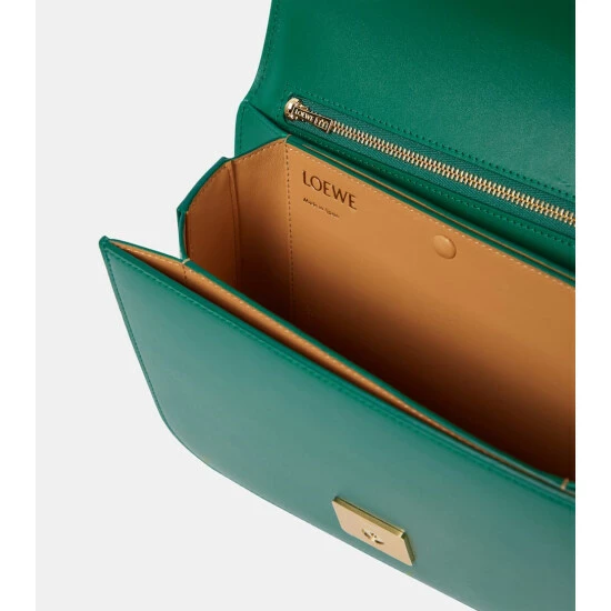 Loewe’s Goya bag is the ultimate expression of fine Spanish craftsmanship. A clean design with a decorative Anagram closure, it’s made in the house’s Madrid atelier from green leather and comes with a sliding shoulder strap.