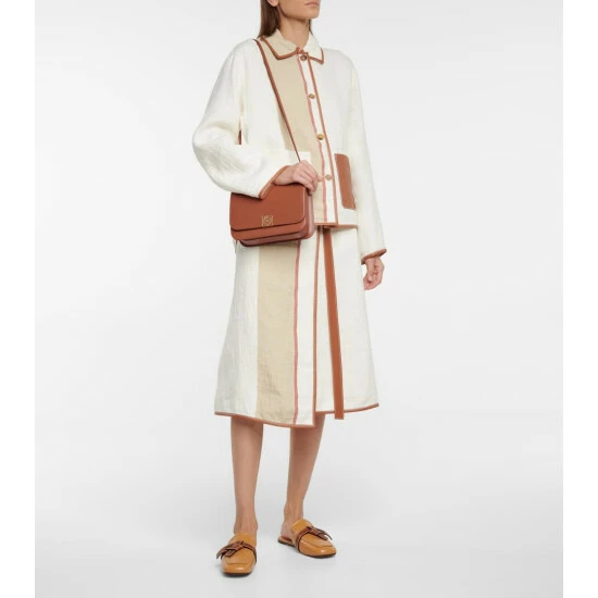 Loewe’s Goya Medium shoulder bag is the ultimate expression of fine Spanish craftsmanship. A clean design with a golden Anagram closure, it’s made in the house’s Madrid atelier from tan silk calfskin leather and lined in contrasting nappa. It comes with a sliding shoulder strap that allows it to be worn across the body or doubled up as a shoulder bag.