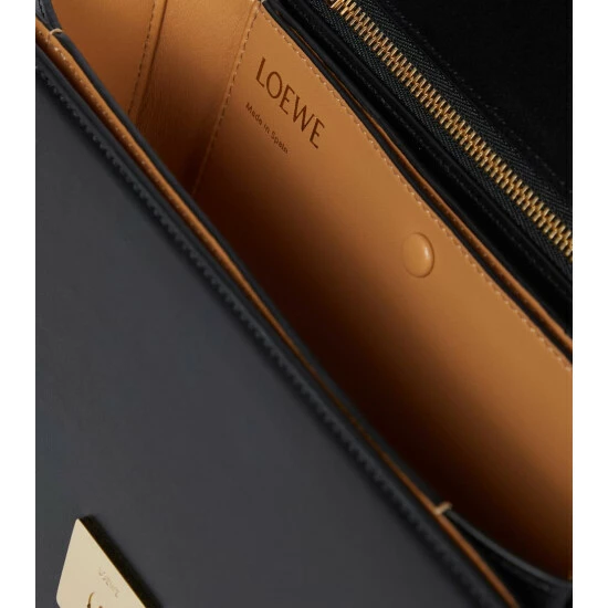 Loewe’s Goya Medium shoulder bag is the ultimate expression of fine Spanish craftsmanship. A clean design with a golden Anagram closure, it’s made in the house’s Madrid atelier from black silk calfskin leather and lined in contrasting nappa. It comes with a sliding shoulder strap that allows it to be worn across the body or doubled up as a shoulder bag.