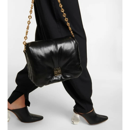 Loewe’s Goya Puffer shoulder bag sees an iconic house style achieve new dimension. Made from lamb leather, the compact design is filled with goose feathers and is accented with golden Anagram hardware and a removable chain strap.