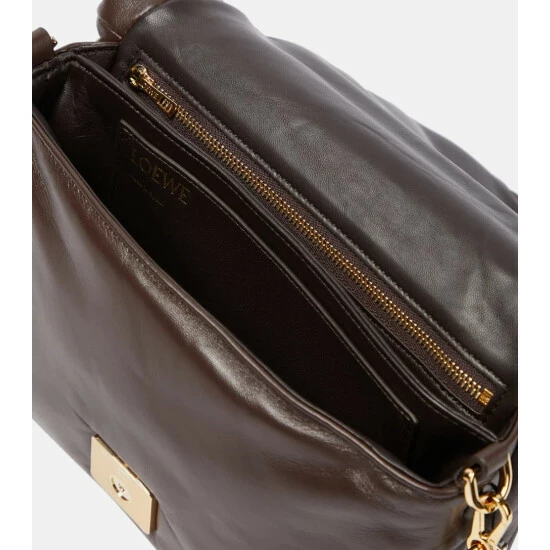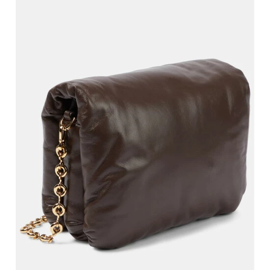 Loewe’s Goya Puffer shoulder bag sees an iconic house style achieve new dimension. Made from lamb leather, the compact design is filled with goose feathers and is accented with golden Anagram hardware and a removable chain strap.