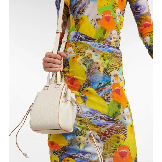 Opt for Loewe’s Hammock Mini shoulder bag for ultimate versatility. Crafted in soft white-grained leather, it has looped straps and drawstring side panels that can be released to create different silhouettes.