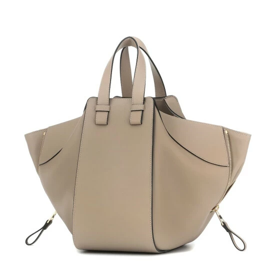 Expand your accessories edit with the Hammock Small bag from LOEWE. In sandy-gray calfskin leather, this deceptively roomy design has one open compartment with sides that can be adjusted to your liking. Lined in herringbone fabric, it’s fitted with practical slip and zip pockets.