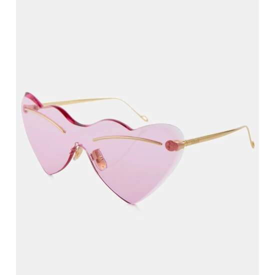 These sunglasses from Loewe facilitate a positive outlook on life. They have a gold-tone metal frame and heart-shaped glasses in a rose tint.