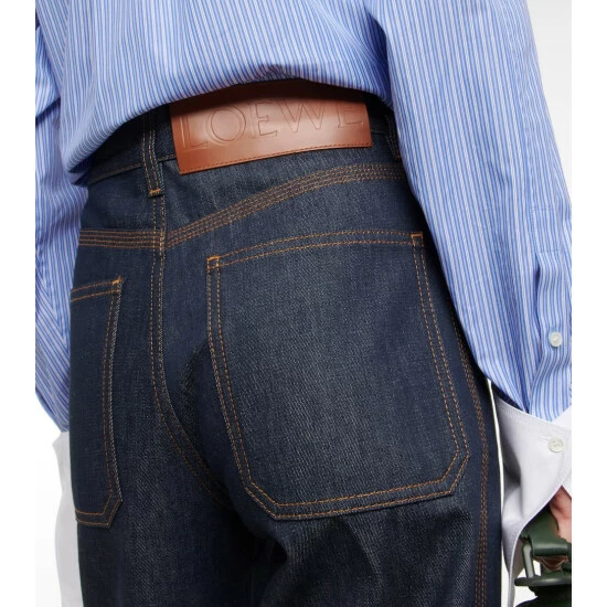 These cropped jeans from Loewe are perfect for daily wear. The high-rise design is made from durable cotton denim in a dark-blue wash, featuring turn-up hems and a logo-embossed leather patch.