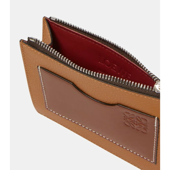 This large coin cardholder from Loewe is made from soft grained leather and features a contrast front with the house’s anagram. This design has six card slots, and a pocket with a leather zip pull.