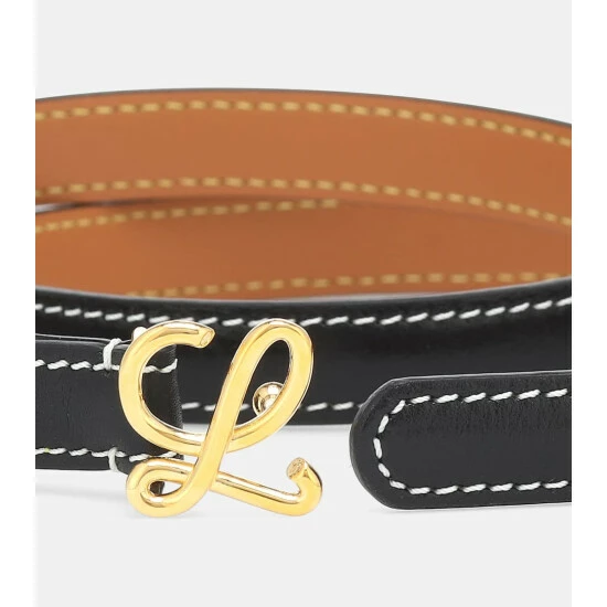 Finish any look elegantly with this slim belt from LOEWE. It’s made in the brand’s Madrid atelier from smooth black calf leather, and accented with contrast topstitching and a golden monogram push buckle.