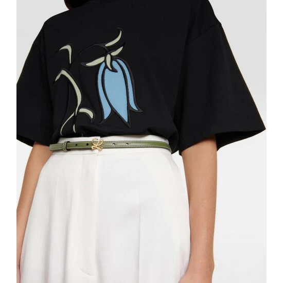 Finish any look elegantly with this slim belt from Loewe. It’s made in the brand’s Madrid atelier from smooth avocado green leather, and accented with contrast topstitching and a golden monogram push buckle.