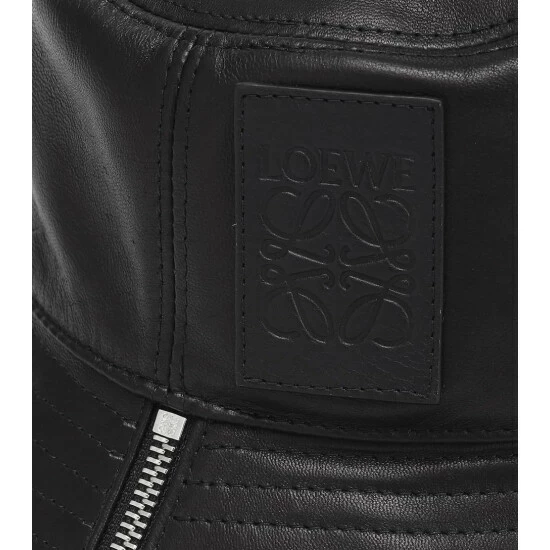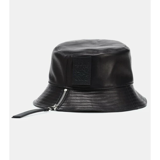 For an elevated take on ‘90s streetwear, look to LOEWE with this black bucket hat. Made in Spain from supple leather, this traditional silhouette has a quilted brim trimmed with a silver-tone zip. The house’s signature Anagram logo patch discreetly accents the back.