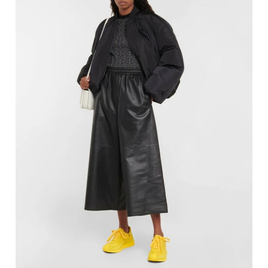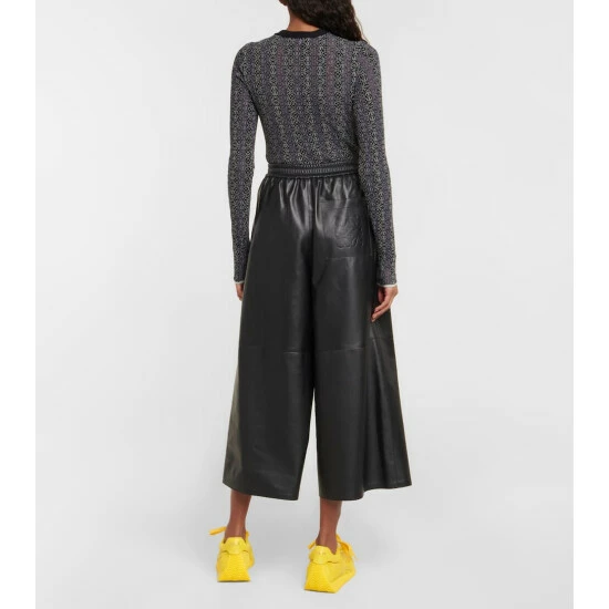 Loewe’s revered leather design is spotlighted for these cropped pants. Appearing with a wide-leg silhouette, this style is made in Spain and has an elasticated waist for a bespoke fit.