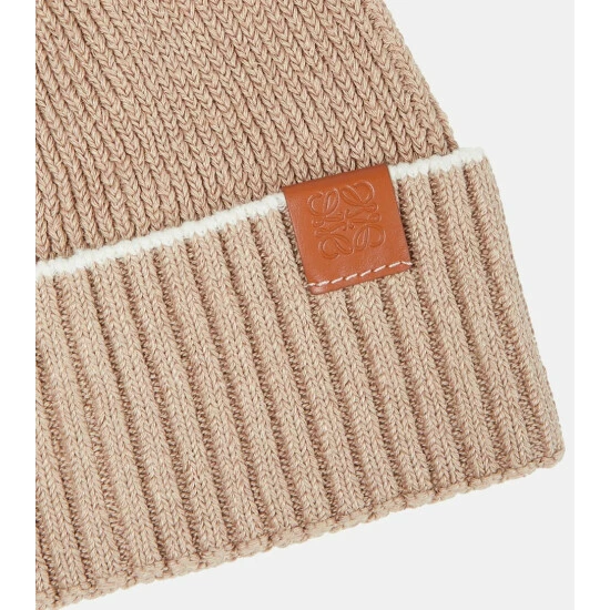Made from a ribbed linen-blend knit, this beanie from Loewe has an upturned brim with a leather logo tag.