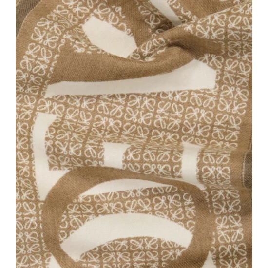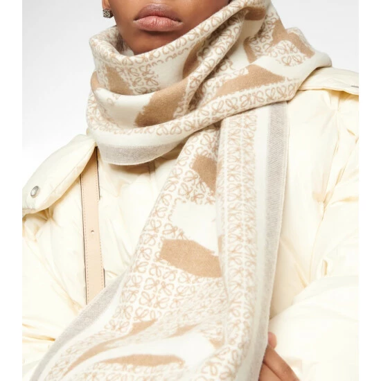 Bundle up in this wool and cashmere scarf from Loewe. This jacquard piece features the brand’s ornate Anagram motif as well as a Loewe Love design.