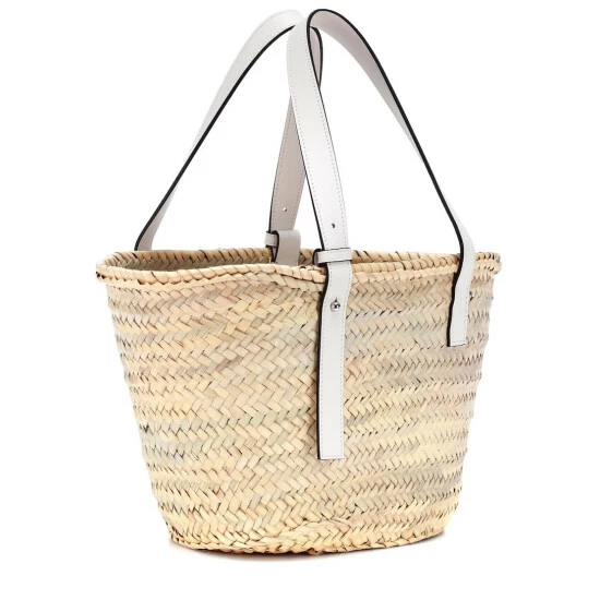 LOEWE brings a luxe spin to the classic market basket tote, a coveted silhouette among fashion insiders, with this beige Medium iteration. Hand-woven from palm leaves, this roomy silhouette is complete with adjustable handles and a logo-embossed patch crafted from smooth white calf leather.