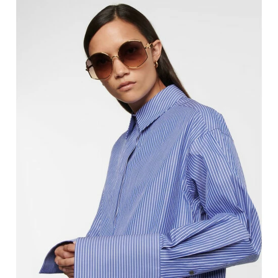 Go incognito with these oversized golden sunglasses from Loewe. The ’70s-inspired pair have reflective tinted lenses, and signature Anagram hardware at the temples. Please note the color of the case may vary.
