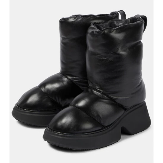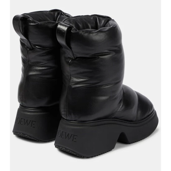 Spotlight Loewe’s revered leather design with these boots. Made from padded lambskin in Italy, this style has exaggerated wedge soles, branded heel counters, and embossed pull tabs.