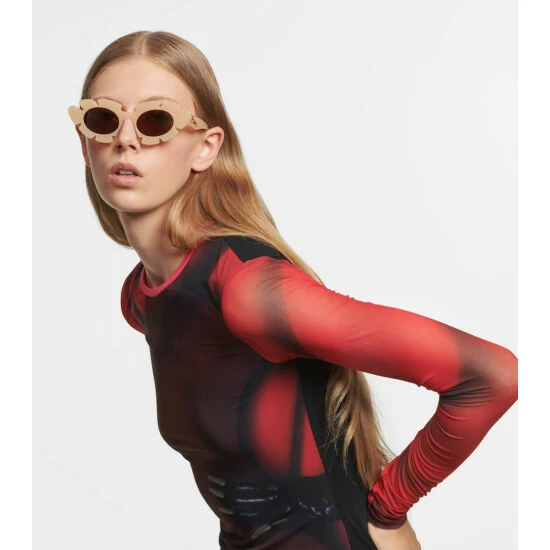 These sunglasses from Loewe Paula’s Ibiza prove that happiness might arrive in a case. The cat-eye frames are made from translucent brown acetate and shaped to resemble the petals of a flower.