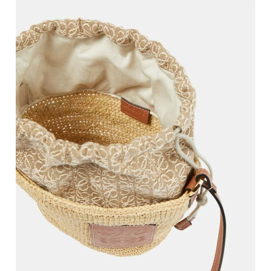 The Pochette raffia tote from Loewe’s Paula’s Ibiza collection deserves to be on your vacation packing list. It has a drawstring top in Anagram-jacquard canvas, a leather shoulder strap, and an embossed logo patch.