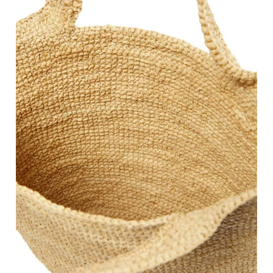 The Slit Mini tote from Loewe’s Paula’s Ibiza collection is woven from raffia. This capacious everyday bag has an Anagram-embossed leather patch and a detachable logo-jacquard shoulder strap.