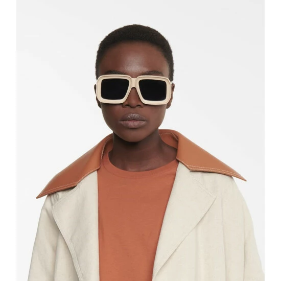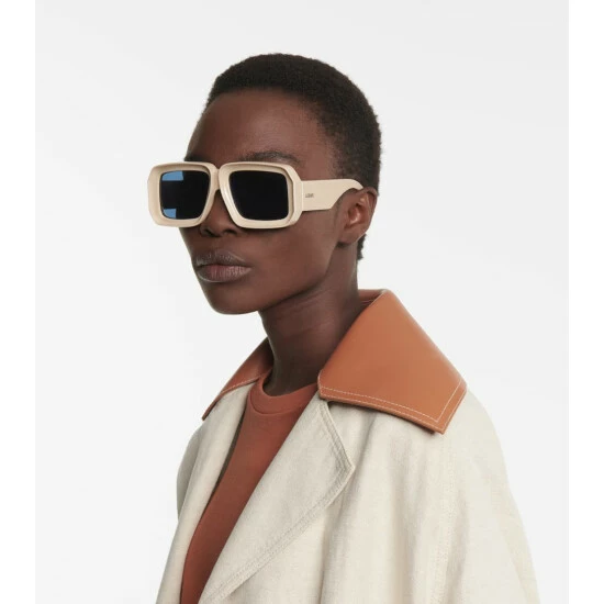 Make these slightly oversized, light beige Loewe sunglasses the centerpiece of summertime ensembles this season. From the latest Paula’s Ibiza collaboration, they feature square acetate frames with category 3 blue tinted lenses and logo detailing at the temples. Store in their grained leather protective case when not in the sun. Please note the color of the case may vary.