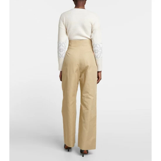These pants from Loewe are made in Italy from cotton and linen in a flared silhouette. They sit high on the waist and are accented by pleat detailing and a tonal integrated belt.
