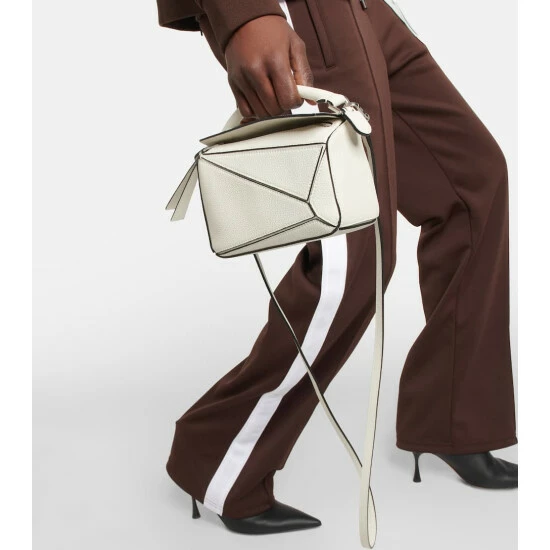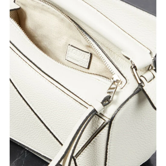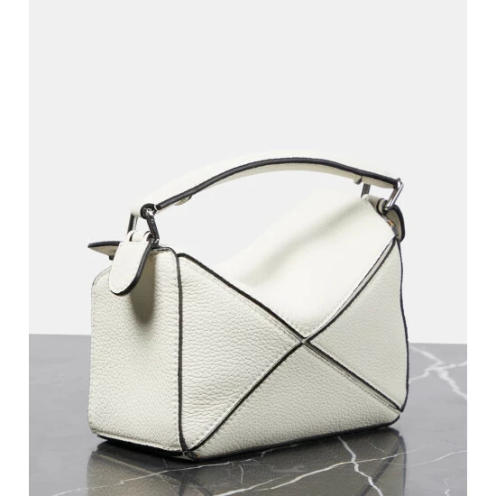 When expert craftsmanship and innovative design meet, you get the white Puzzle Mini shoulder bag from Loewe. Jonathan Anderson wanted to create a bag that mirrors the brand’s multi-faceted identity, so leather artisans cut its satin calfskin panels into unique geometric shapes and placed them in a now-iconic asymmetric setting. Swing yours by the long strap or carry it in-hand – the latter manipulating the leather into a softer shape.