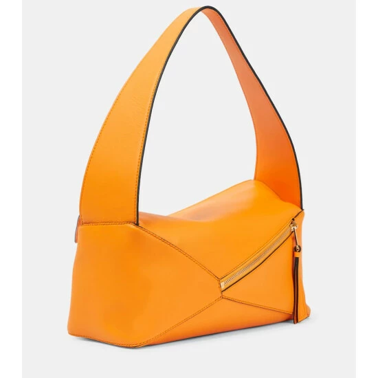 Brighten up your accessories edit with Loewe’s slouchy Puzzle leather shoulder bag in mandarin orange. Expertly crafted in Spain from calfskin leather, the asymmetrical style has geometric panels and an embossed Anagram logo.