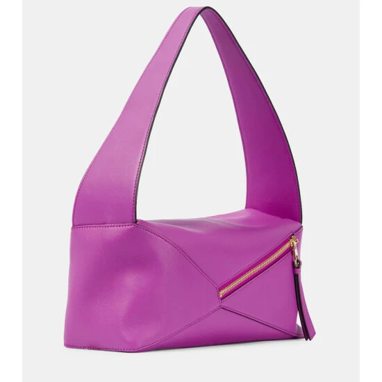 When expert craftsmanship and innovative design meet, you get the purple Puzzle slouchy shoulder bag from Loewe. Jonathan Anderson wanted to create a bag that mirrors the brand’s multi-faceted identity, so leather artisans cut its smooth calfskin panels into unique geometric shapes and placed them in a now-iconic asymmetric setting. Swing yours by the long strap or carry it in-hand – the latter manipulating the leather into a softer shape.