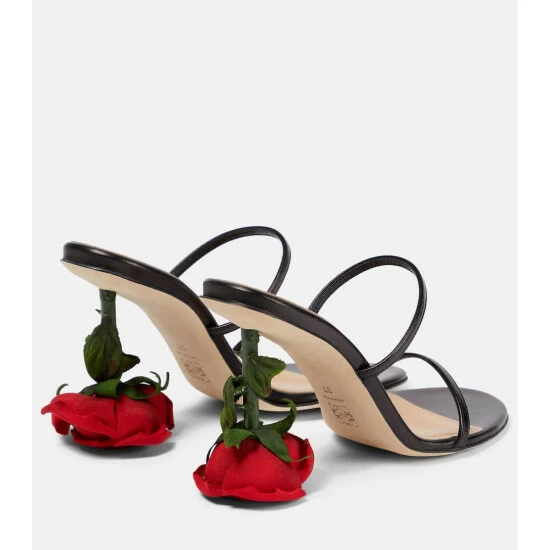 Set atop rose-shaped heels, these mules from Loewe evoke a sense of whimsy and romance. The strappy pair is made in Italy from glossy leather.